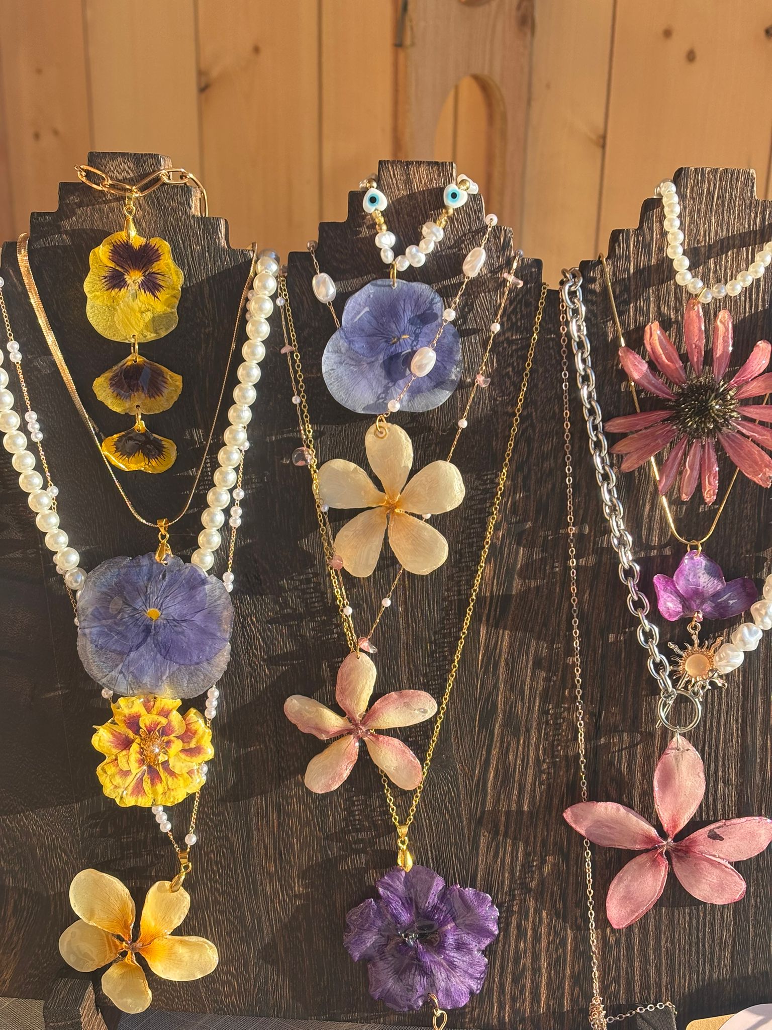 I create custom botanical jewelry using real flowers, thoughtfully preserved.